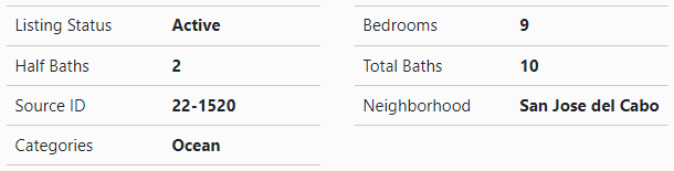 Walking distance to the beach, with big Sea of Cortez views and including all the private amenities of a small resort, Casa Escondida provides a peaceful sanctuary for your life. Set on two lots totaling 1.25 acres, on a cul-de-sac in the double gated Fundadores community of Puerto Los Cabos, at Casa Escondida privacy abounds. Lushly landscaped gardens lead from the main house through a plethora of amenities including pool, Jacuzzi, fountains, a private pickleball court, fitness center with steam, sauna and hair care station, movie theater, wine cellar and tasting room, office, double BBQ cook centers, pizza oven, oversized fire pit and more. Designed and built by long-time Los Cabos residents and hoteliers, every detail has been considered to protect views and privacy and to embrace the